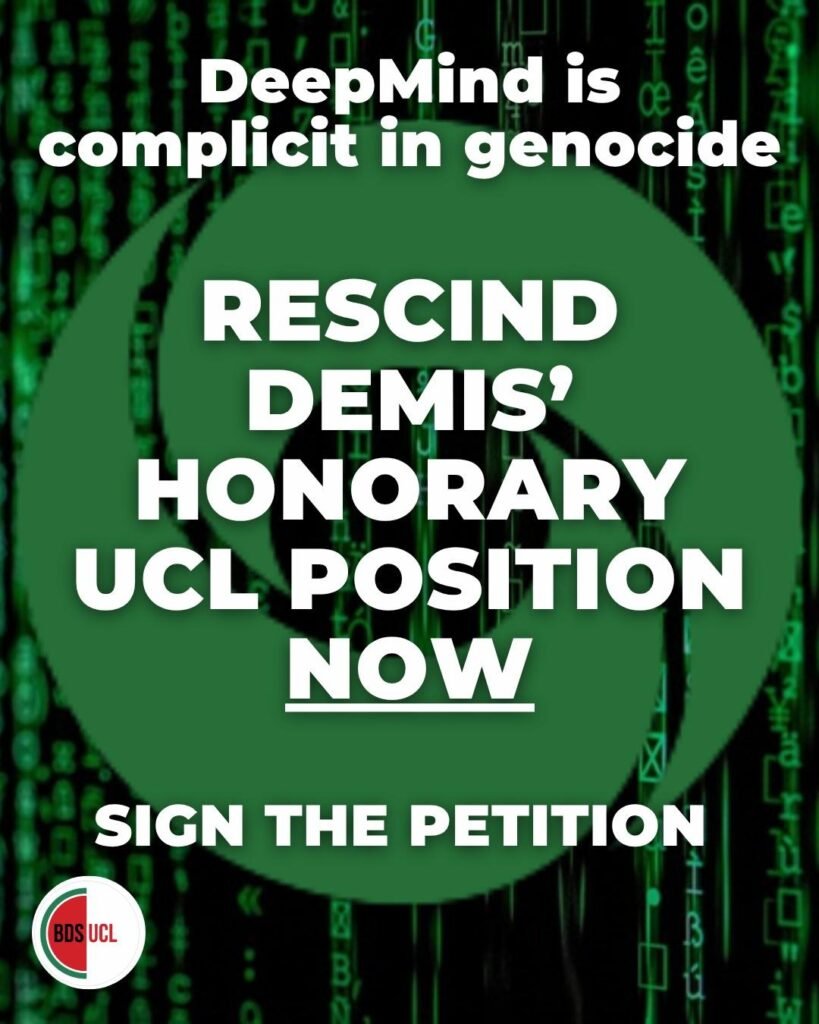 UCL staff, students and alumni – Demand that UCL rescinds Demis Hassabis’ Honorary Fellowship.